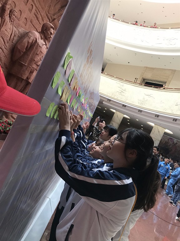 在纪念碑英雄雕像前,新一代青年学子许下庄严的承诺,铭记历史,不忘初心,珍惜幸福生活,传承红色基因,为实现中华民族伟大复兴奉献青春和智慧!