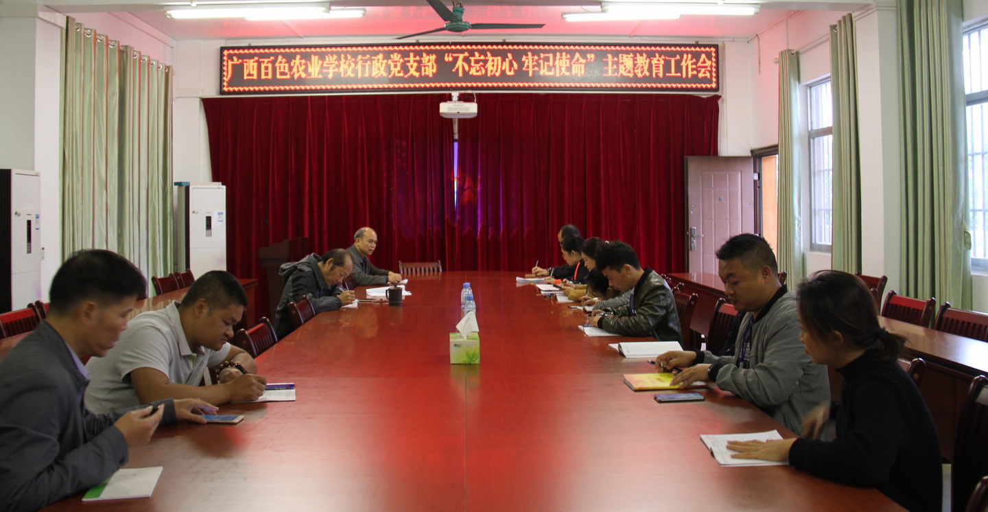 根据学校党总支关于开展“不忘初心、牢记使命”主题教育的统一部署,11月20日下午,行政党支部在综合楼三楼会议室召开“不忘初心、牢记使命”主题教育工作会议。支部全体党员、预备党员和入党积极分子17人参加会议,会议由支部书记黄世吉主持。
