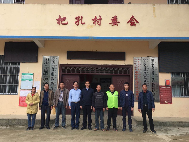 在把孔村,第一书记伍勤忠和该村两委干部热情接待莫荣军一行,并对我校选派罗锦耀同志到天等县都康乡把孔村参与脱贫攻坚(乡村振兴)工作表示热情感谢。莫荣军表示,罗锦耀同志派驻期间务必做好传帮带工作,共同巩固把孔村的脱贫成果,谋划乡村振兴。