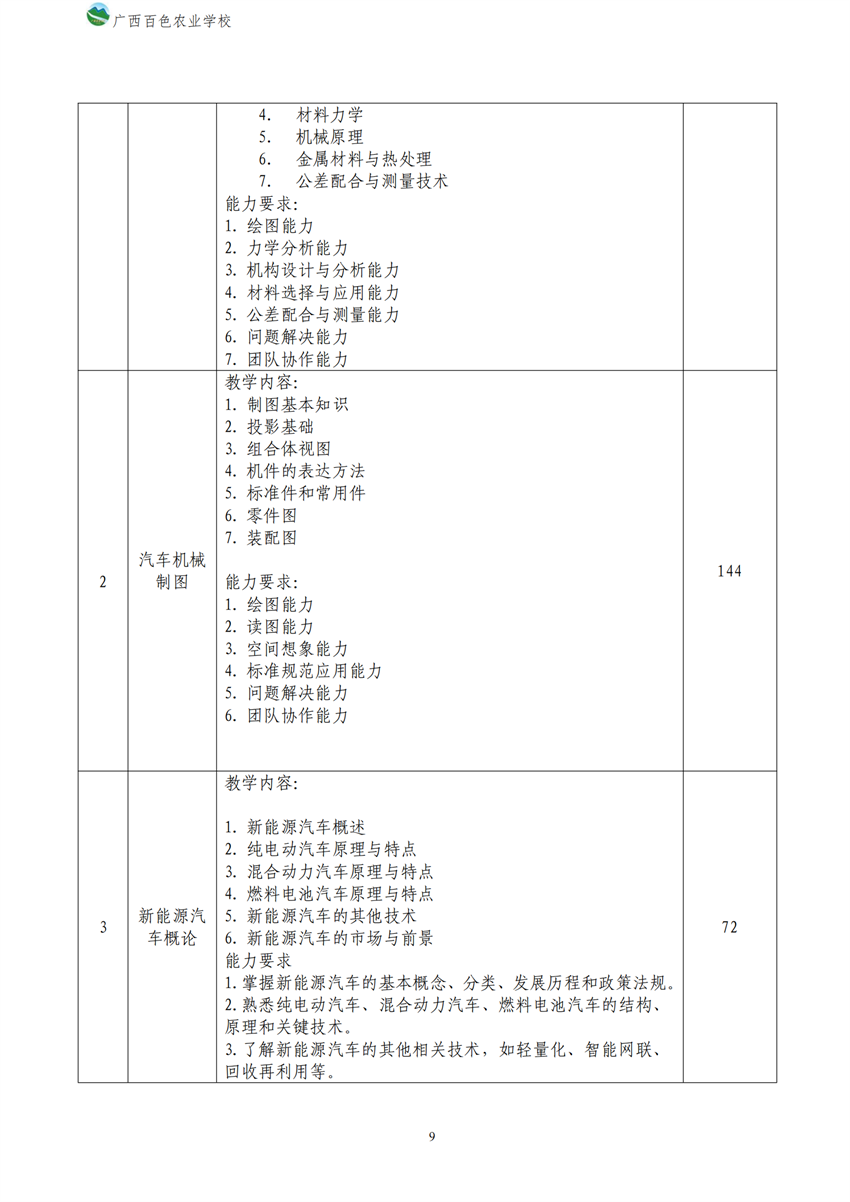>> 广西百色农业学校新能源汽车运用与维修专业人才培养方案